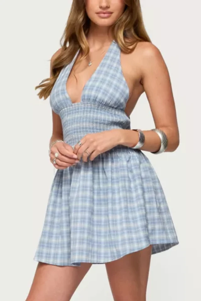 Edikted Women's Plaid Smocked Halter Mini Dress