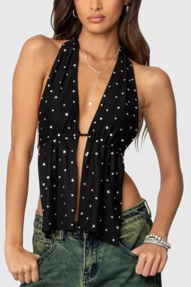 Edikted Studded Open Back Halter Top