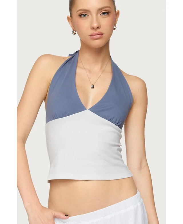 Edikted Women's Contrast Ribbed V Neck Halter Top