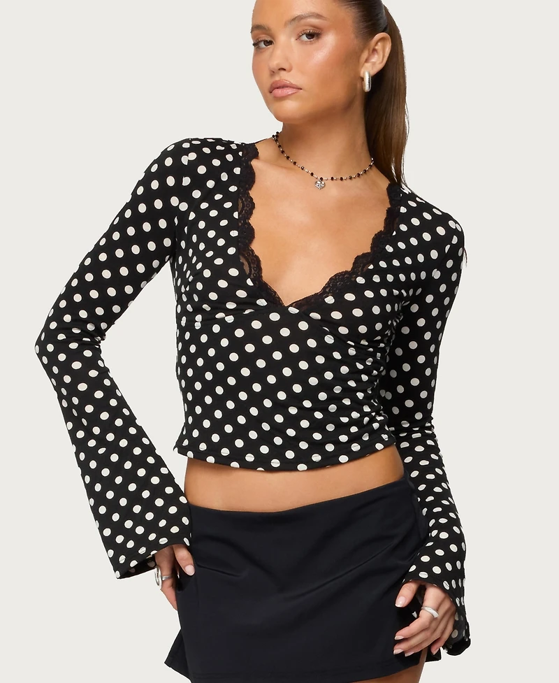 Edikted Women's Polka Dot Lacey Plunge Neck Top