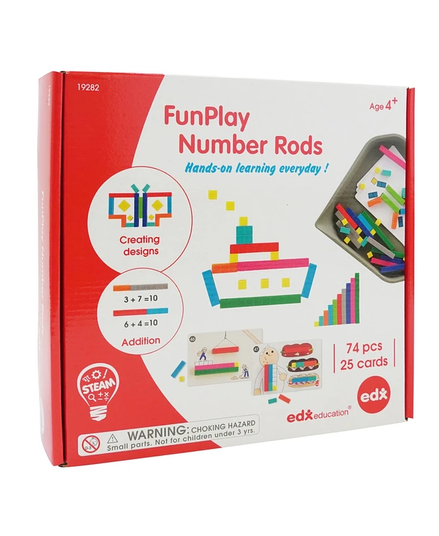 edxeducation FunPlay Number Rods, Set of 74 Math Manipulatives, 50 Activities, Messy Tray