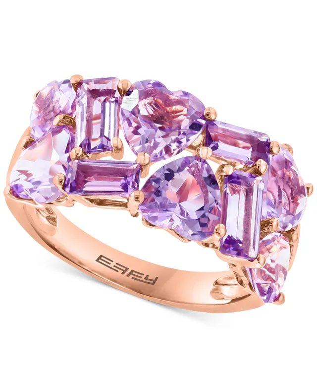 Effy Amethyst (7/8 ct. t.w.) & Pink Amethyst (4 ct. t.w.) Heart & Baguette Cluster Ring in 14k Rose Gold