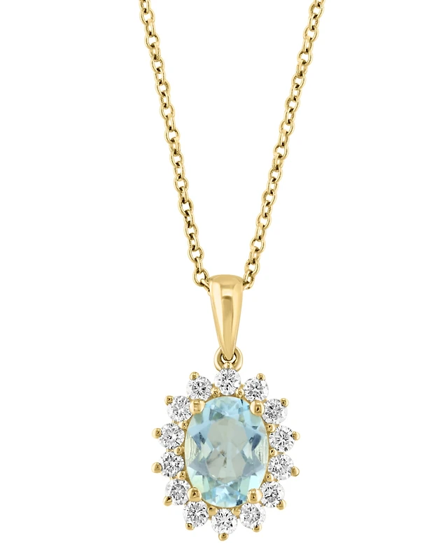 Effy Aquamarine (1 ct. t.w.) & Diamond (1/3 ct. t.w.) Oval Halo 18" Pendant Necklace in 14k Gold