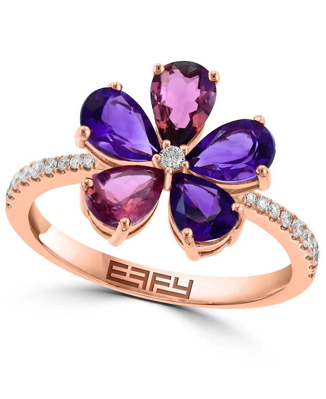 Effy Multi-Stone (5-1/4 ct. t.w.) and Diamond (1/5 Flower Ring 14k Rose Gold