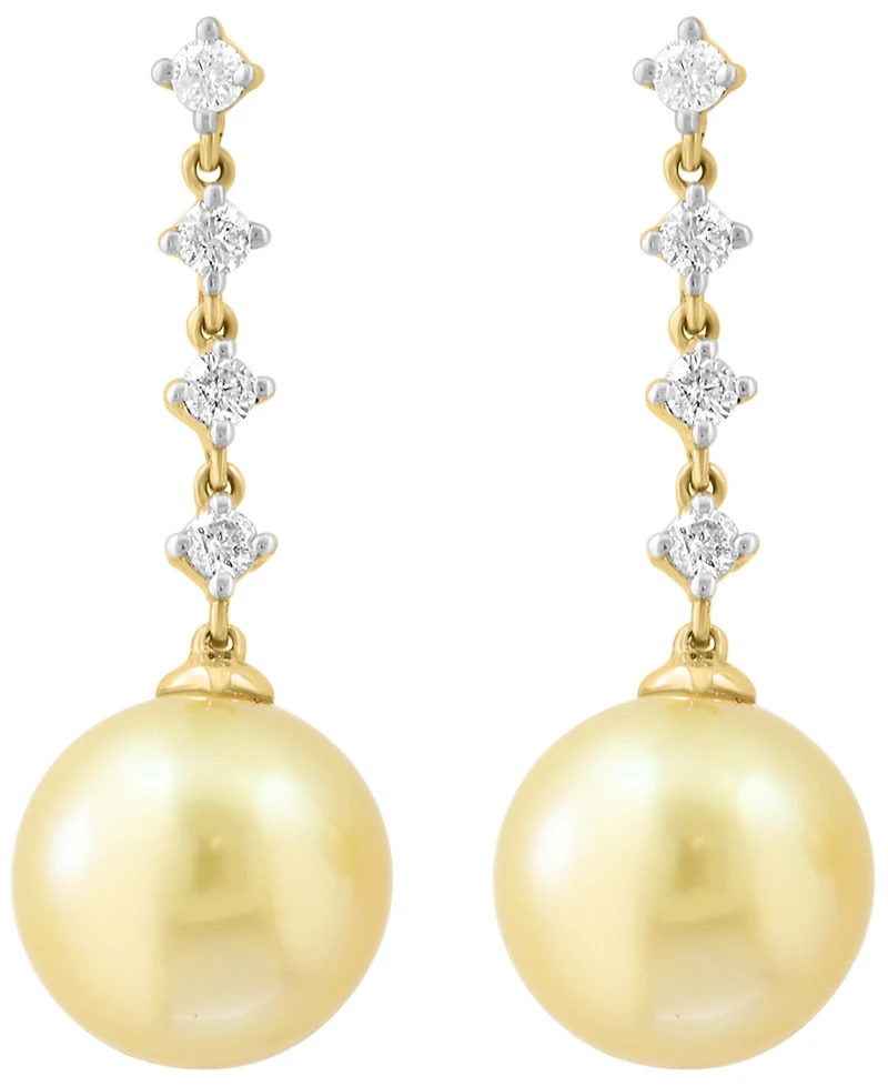 Effy Collection Golden South Sea Pearl (8mm) and Diamond Earrings (1/8 ct. t.w.) in 14k Yellow GoldEffy Collection Golden South Sea Pearl (8mm) and Diamond Earrings (1/8 ct. t.w.) in 14k Yellow GoldEffy Collection Golden South Sea Pearl (8mm) and Diamond Earrings (1/8 ct. t.w.) in 14k Yellow Gold