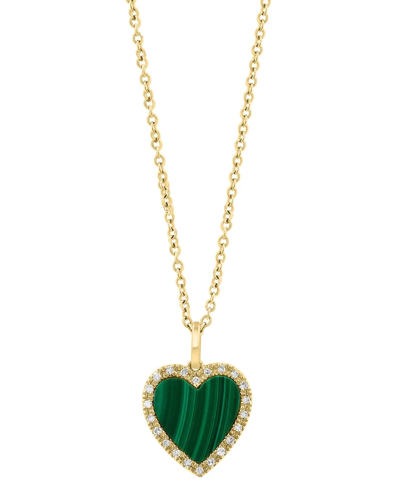 Effy Collection Malachite & Diamond (1/20 ct. t.w.) Heart Pendant Necklace in 14k Yellow Gold