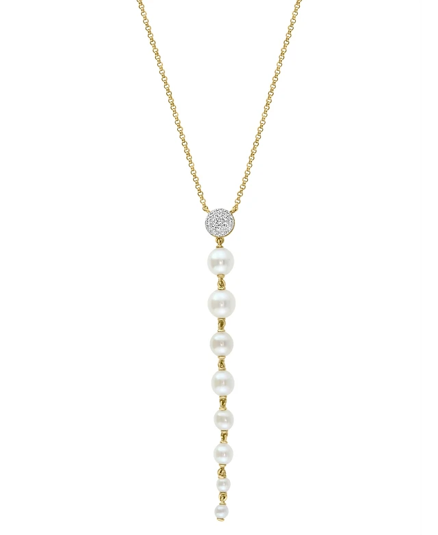 Effy Cultured Freshwater Pearl (2-1/2 - 5mm) & Diamond (1/10 ct. t.w.) Lariat Necklace in 14k Gold, 14-3/4" + 1-1/4" extender