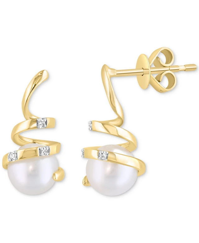 Effy Cultured Freshwater Pearl (6mm) & Diamond Accent Spiral Drop Earrings in 14k Gold