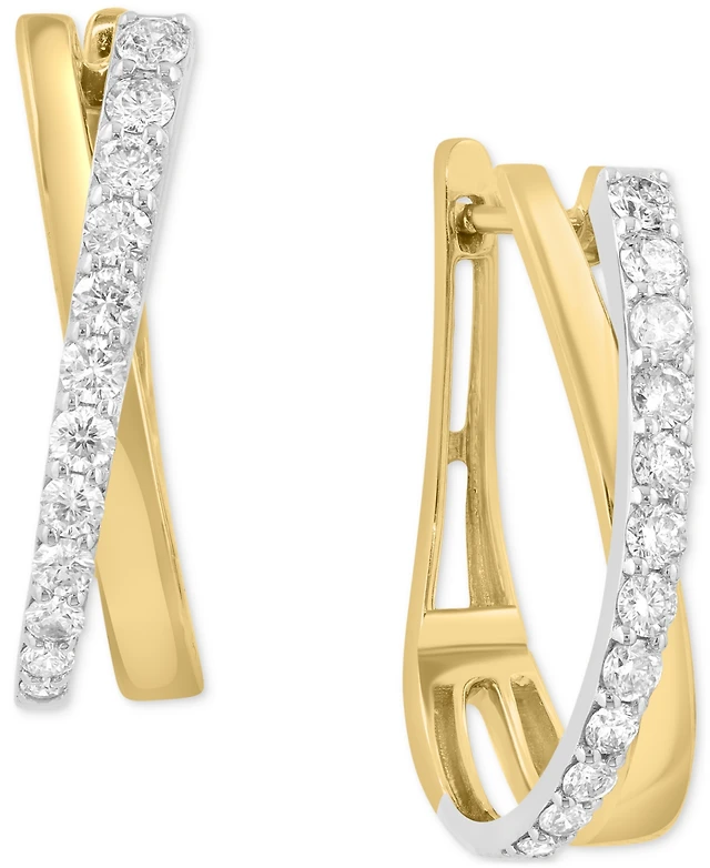 Effy Diamond Crossover Oval Hoop Earrings (1 ct. t.w.) in 14k Gold
