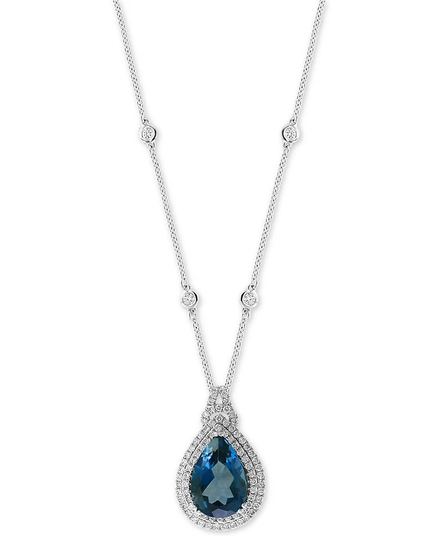 Effy London Blue Topaz (12-7/8 ct. t.w.) & Diamond (1/5 ct. t.w.) 18" Pendant Necklace in 14k White Gold