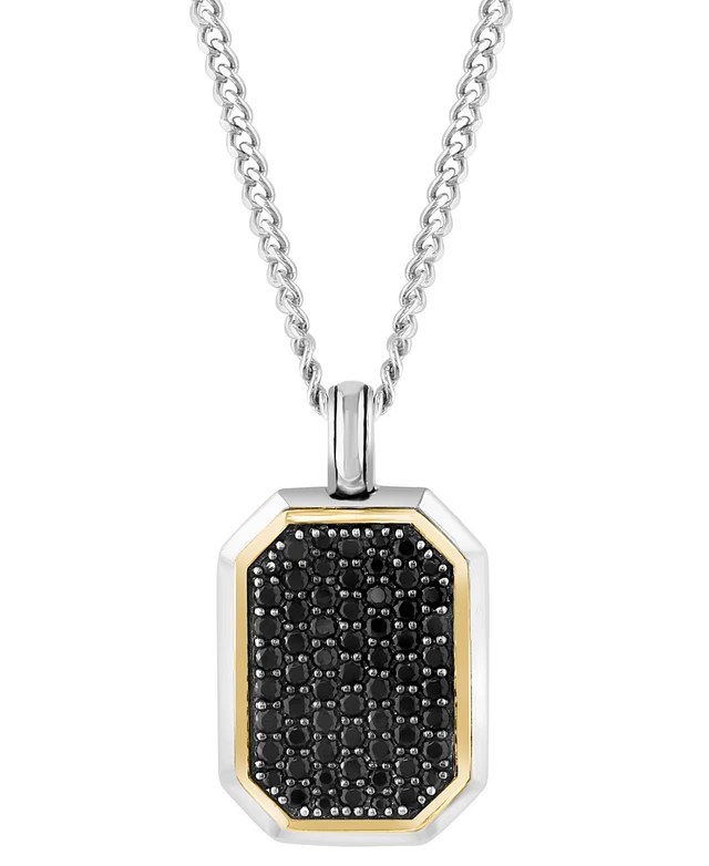 Effy Men's Black Spinel 22" Pendant Necklace (1-3/8 ct. t.w.) in Sterling Silver & 18k Gold-Plated Sterling Silver
