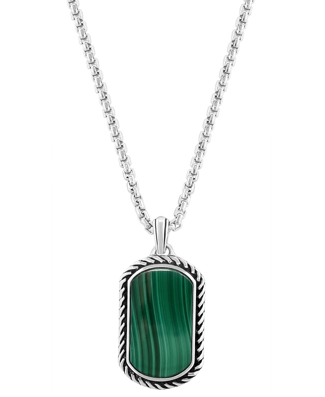 Effy Men's Malachite Dog Tag 22" Pendant Necklace in Sterling Silver