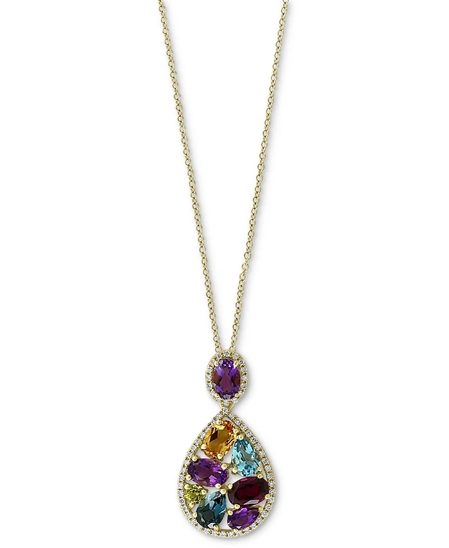 Effy Multi-Gemstone (3-3/4 ct. t.w.) & Diamond (1/4 ct. t.w.) Pear Halo 18" Pendant Necklace in 14k Gold