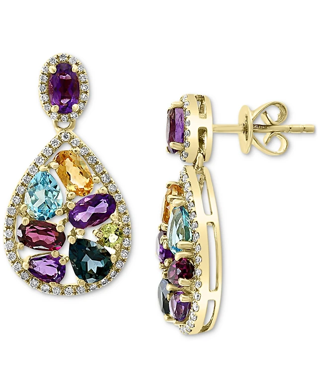 Effy Multi-Gemstone (4-1/3 ct. t.w.) & Diamond (3/8 ct. t.w.) Pear Halo Drop Earrings in 14k Gold