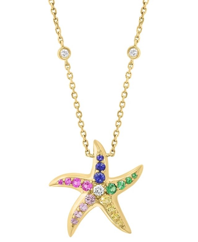 Effy Multi-Gemstone (5/8 ct. t.w.) & Diamond (1/8 ct. t.w.) Starfish Pendant Necklace in 14k Gold, 18" + 1" extender