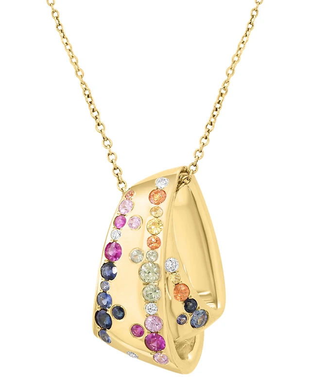 Effy Collection Diamond Accent & Multi Sapphire (1-5/8 ct. t.w.) Pendant Necklace in 14k Gold Over Silver, 17" + 1" extender