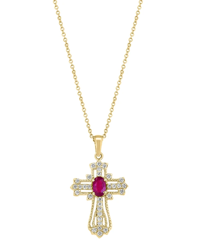 Effy Ruby (1/2 ct. t.w.) & Diamond (1/2 ct. t.w.) Openwork Cross 18" Pendant Necklace in 14k Gold