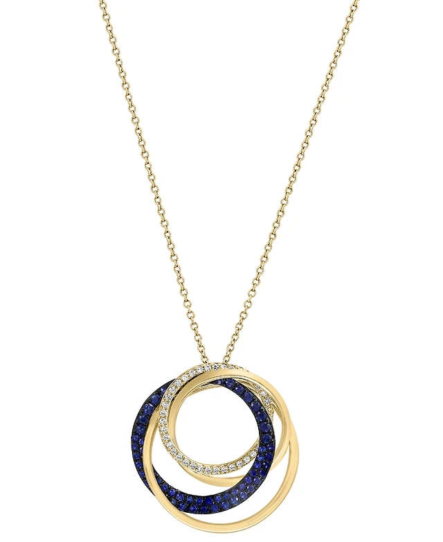 Effy Sapphire (1/2 ct. t.w.) & Diamond (1/6 ct. t.w.) Interlocking Rings 18" Pendant Necklace in 14k Gold