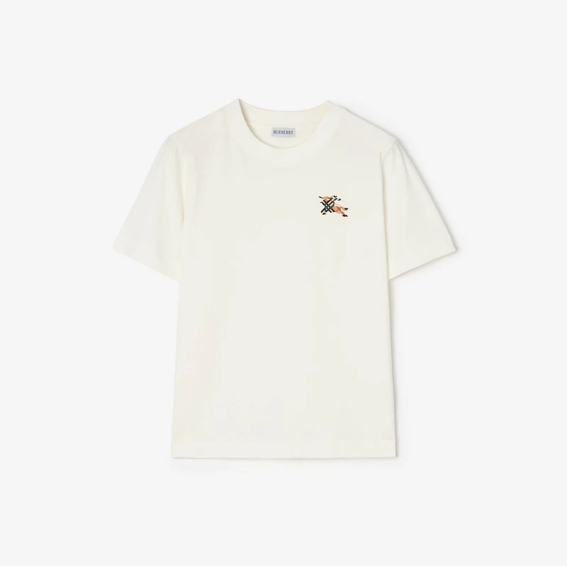 A T-shirt in lightweight cotton jersey, cut to a classic fit. The crew-neck style is embroidered with a tufted Equestrian Knight Design in sand beige Burberry Check.
