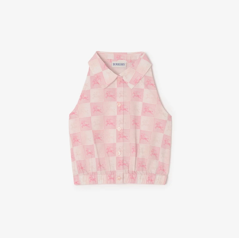 A lightweight cotton shirt printed with our Equestrian Knight Design in a pretty pink checkerboard pattern. The sleeveless style features a cropped, elasticated waist for a comfortable fit.