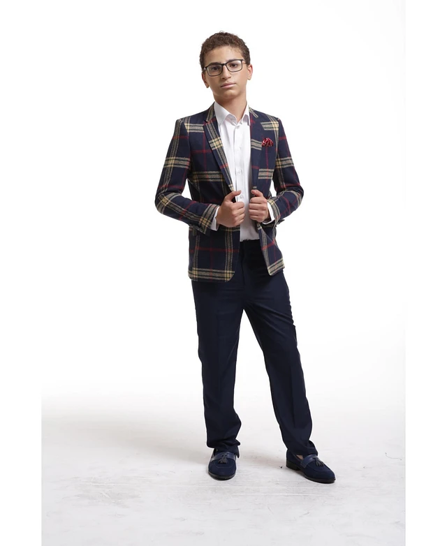 Elie Balleh Boys Navy Slim Fit Classic Plaid Blazer