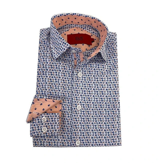 Elie Balleh Little Boys Blue Paisley Slim Fit Shirt