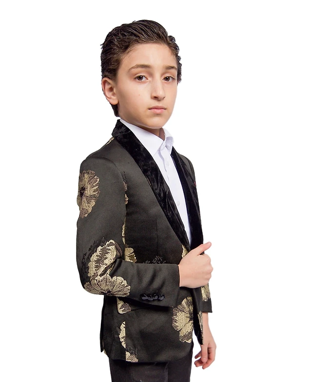 Elie Balleh Toddler Black and Gold Slim Fit Floral Dinner Jacket