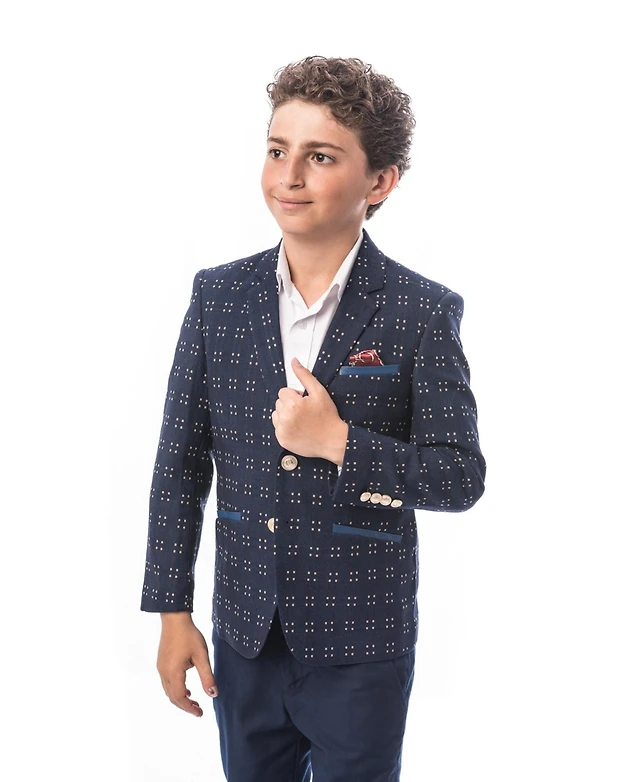 Elie Balleh Toddler Navy Slim Fit Diamond Dots Blazer