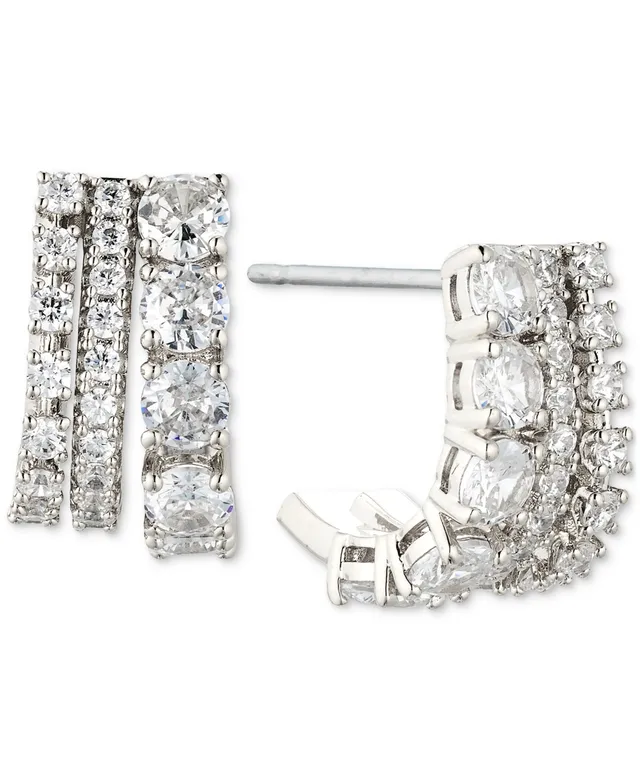 Eliot Danori Silver-Tone Cubic Zirconia Small J-Hoop Earrings, Created for Macy's