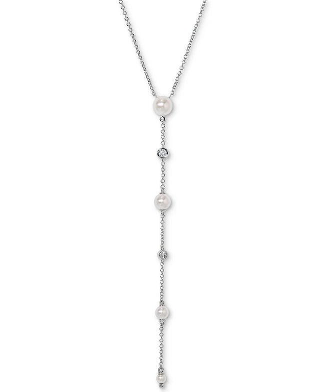 Eliot Danori Silver-Tone Imitation Pearl & Cubic Zirconia Bezel Maisie Lariat Necklace, 16" + 2" extender, Exclusively at Macy's