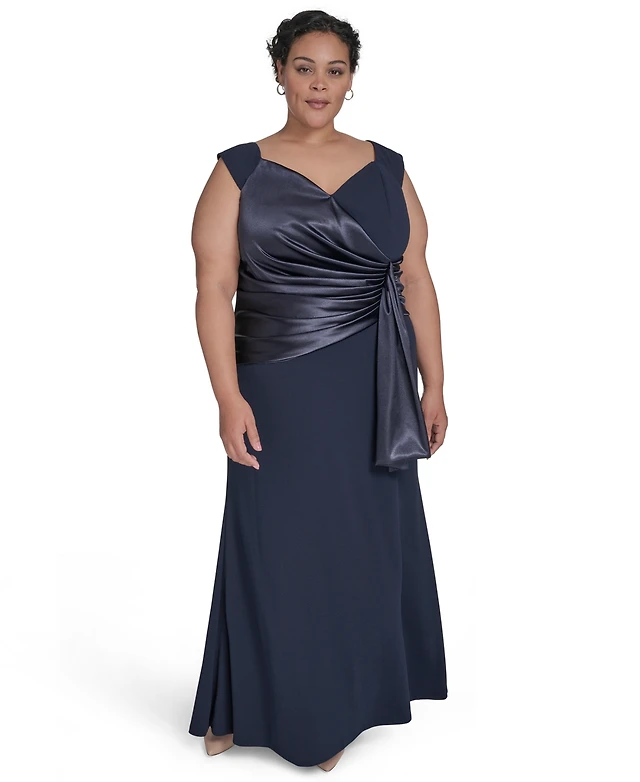 Eliza J Plus Size Mixed-Media Scuba Crepe Sleeveless Gown