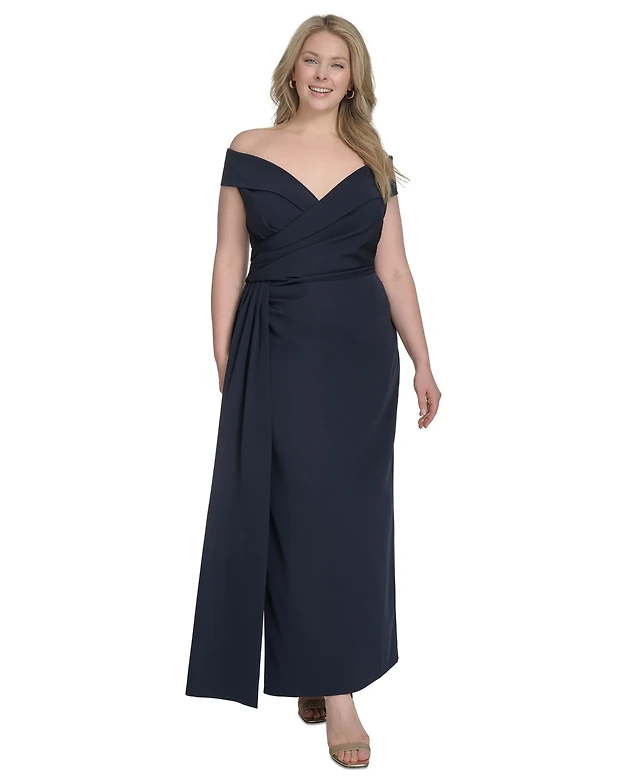 Eliza J Plus Size Off-The-Shoulder Sweetheart Side-Split Gown