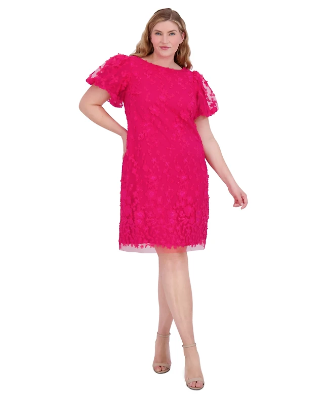 Eliza J Plus Size Puffed-Sleeve 3D-Floral Shift Dress