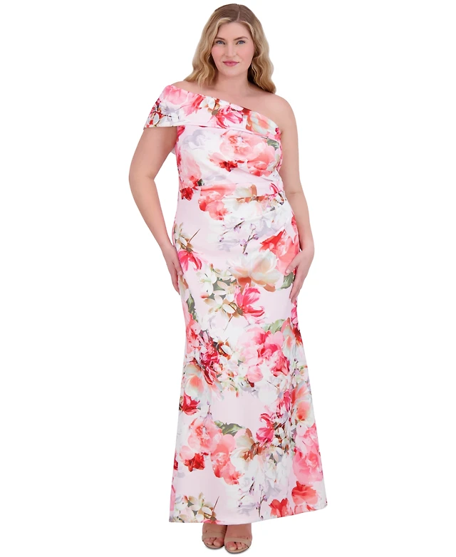 Eliza J Women's One-Shoulder Floral-Print Ruched Gown