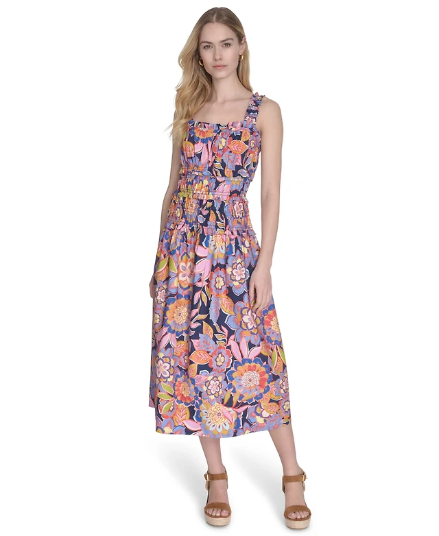 Eliza J Women's Cotton Smocked-Waist Floral-Print Dress