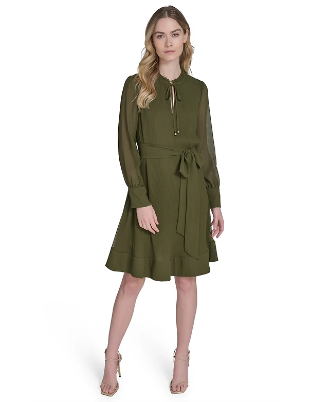 Eliza J Women's Solid-Color Pleated Chiffon Tie-Belt Dress