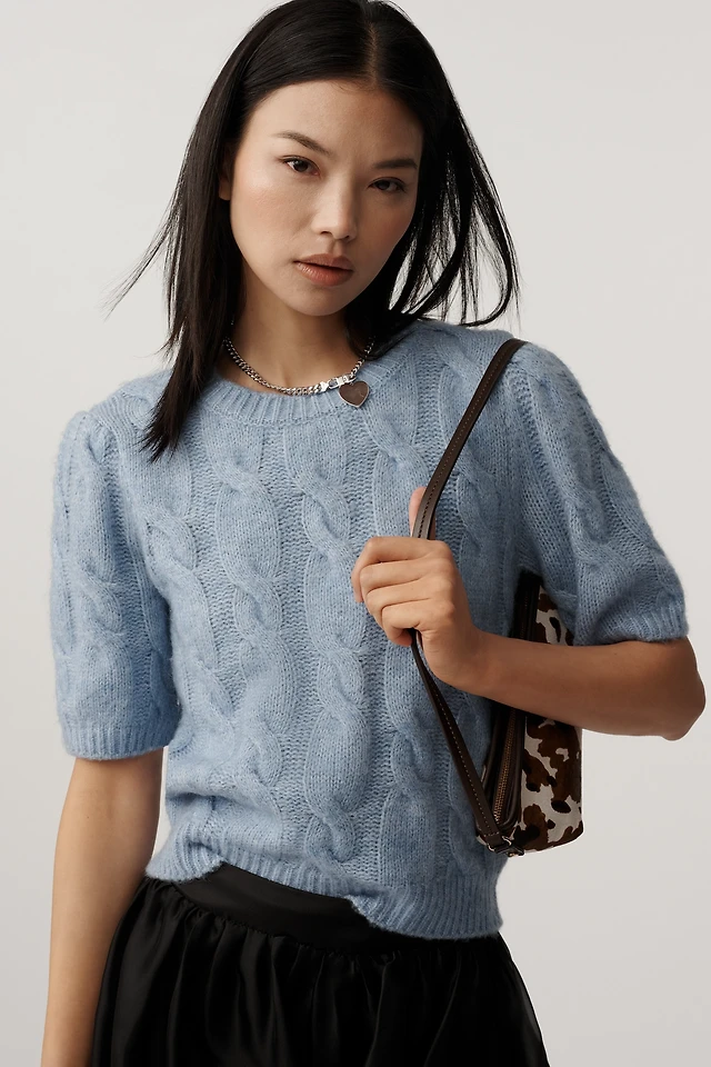Ellen Tracy Short-Sleeve Cable-Knit Sweater