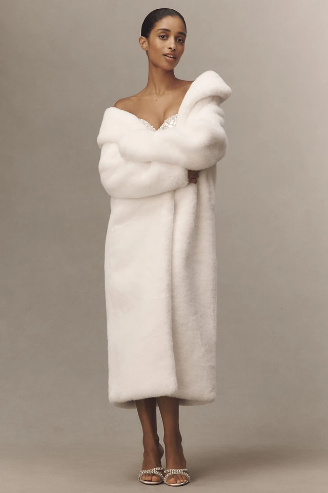 By Anthropologie Long-Sleeve Faux Fur Trim Sweater Mini Dress