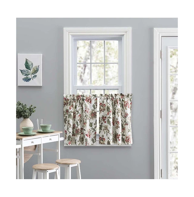 Ellis Curtain Madison Floral Design Printed Natural Ground 1.5 X22 Rod Pocket Tailored Tier 56 X22 X 36 X22 Brick