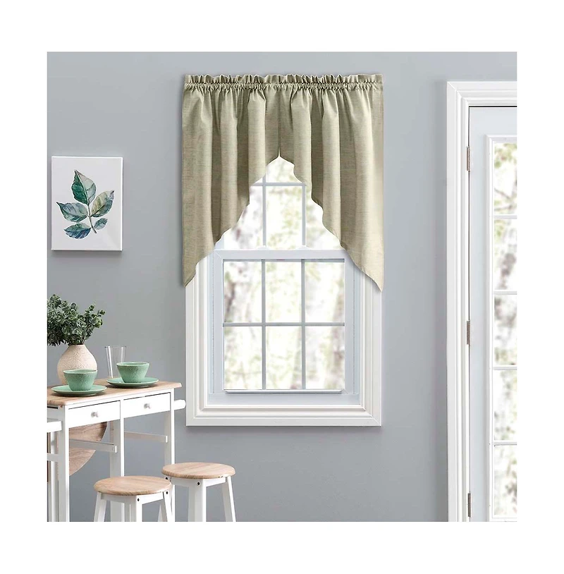 The Ellis curtain lisa solid color poly cotton duck fabric tailored swag is a stylish and versatile curtain that can be used in any room in the home. The 56" x 36" tailored swag are made of a blend of 50% polyester and 50% cotton duck, which makes them durable and easy to care for. They have a solid color that is both elegant and understated. The solid color of the tailored swag is a classic and timeless choice that will complement any decor. The tailored swag are made of a durable fabric that will withstand years of use. These are suitable for use in any room in the home, including the bedroom, living room, dining room, and kitchen.