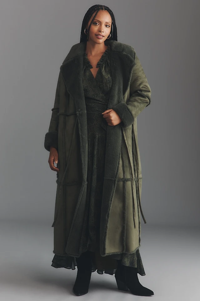 Eloquii Plus Faux Fur Sherpa Fleece Long Coat
