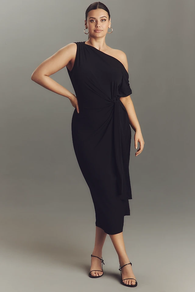 Eloquii Plus One-Shoulder Twist-Front Midi Dress