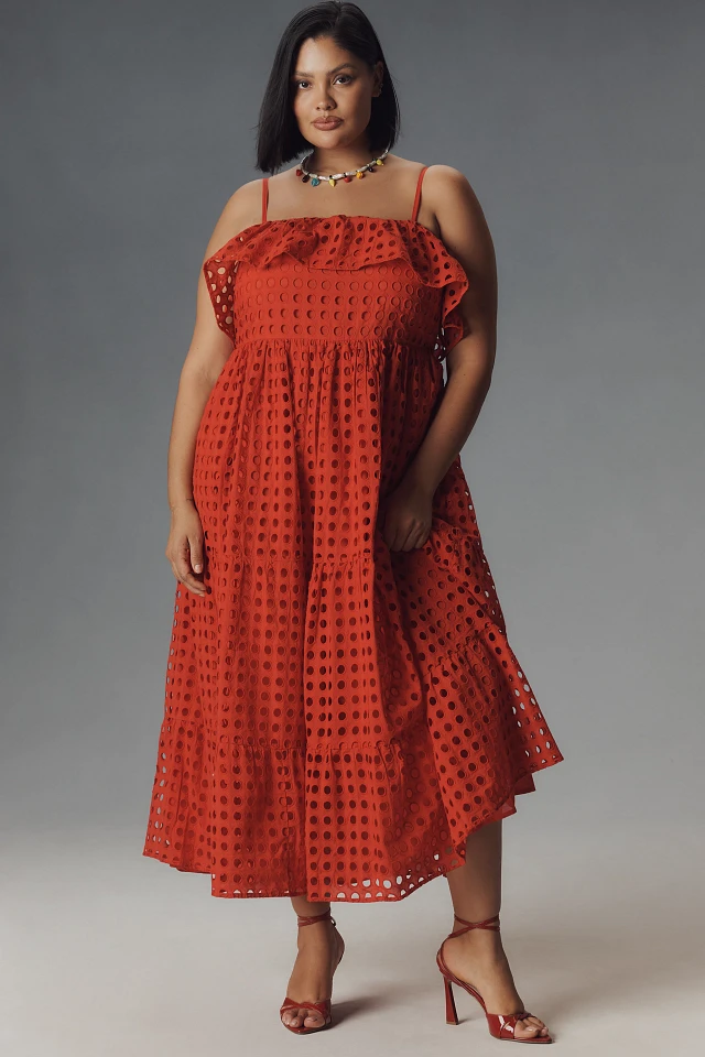 Eloquii Plus Sleeveless Ruffled Tiered Eyelet Midi Dress