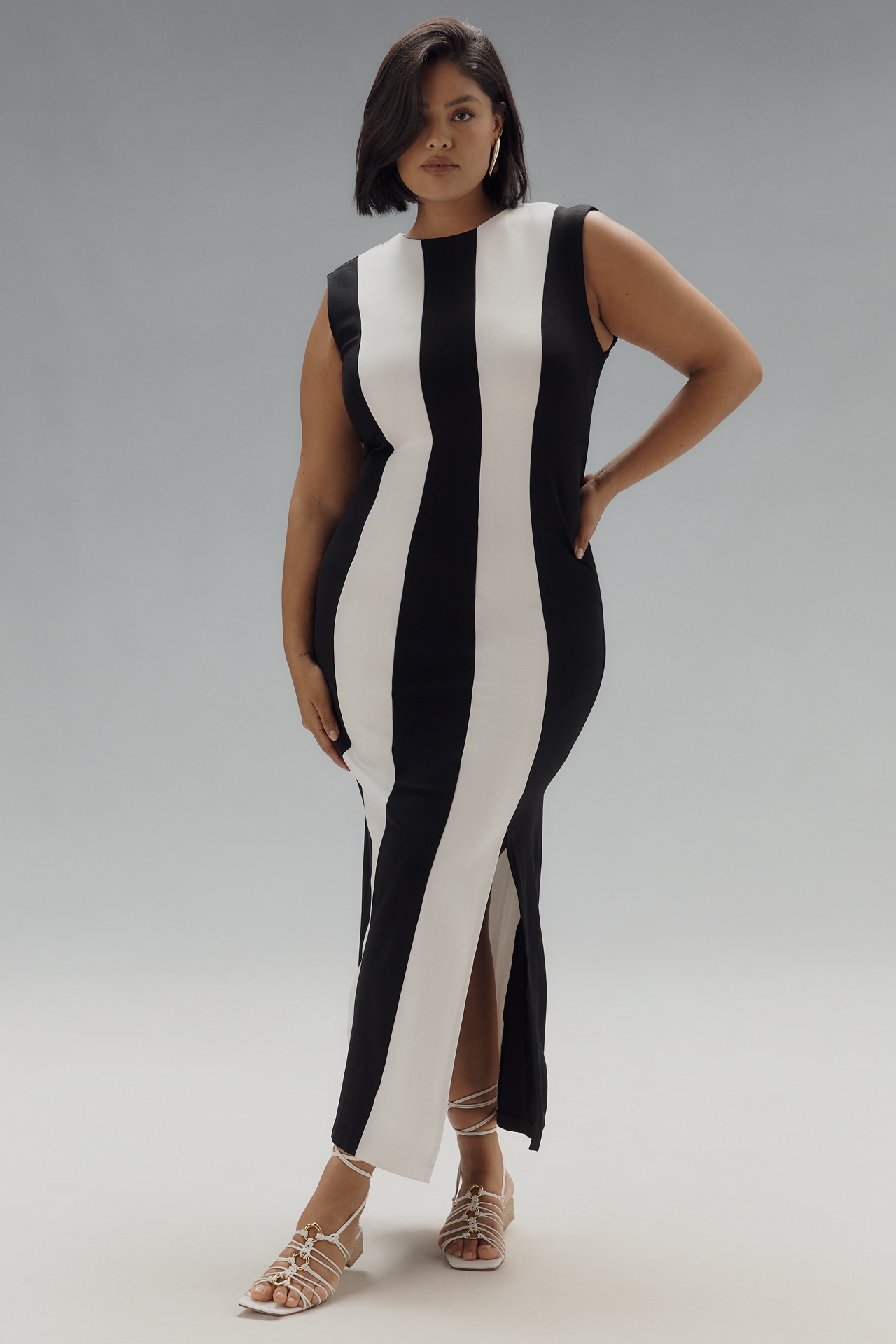 Eloquii Plus Sleeveless Striped Knit Maxi Dress