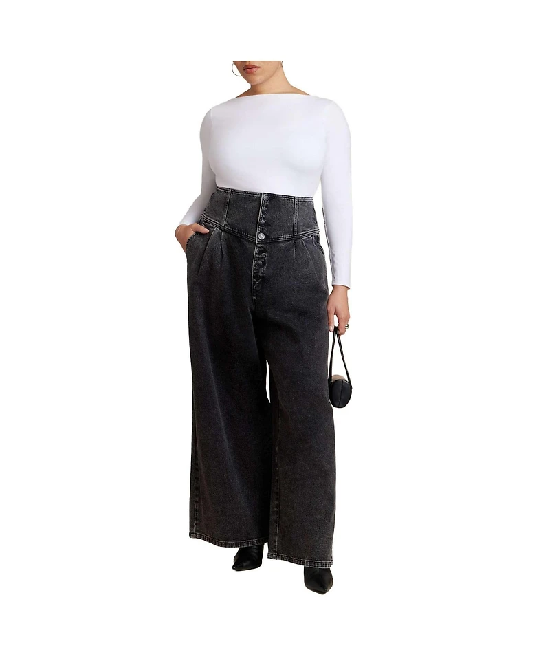 Eloquii Women's Corset Waist Wide Leg Jean