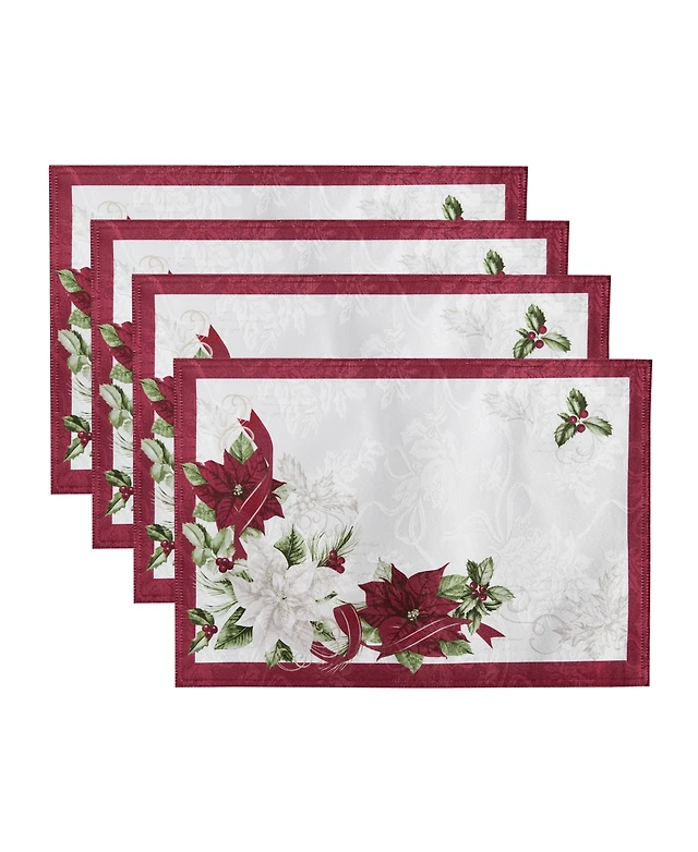 Elrene Poinsettia Elegance Jacquard Holiday Placemat, Set of 4