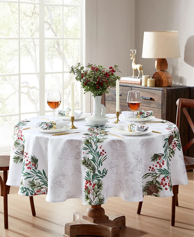 Elrene Winter Holiday Berry Fabric Tablecloth