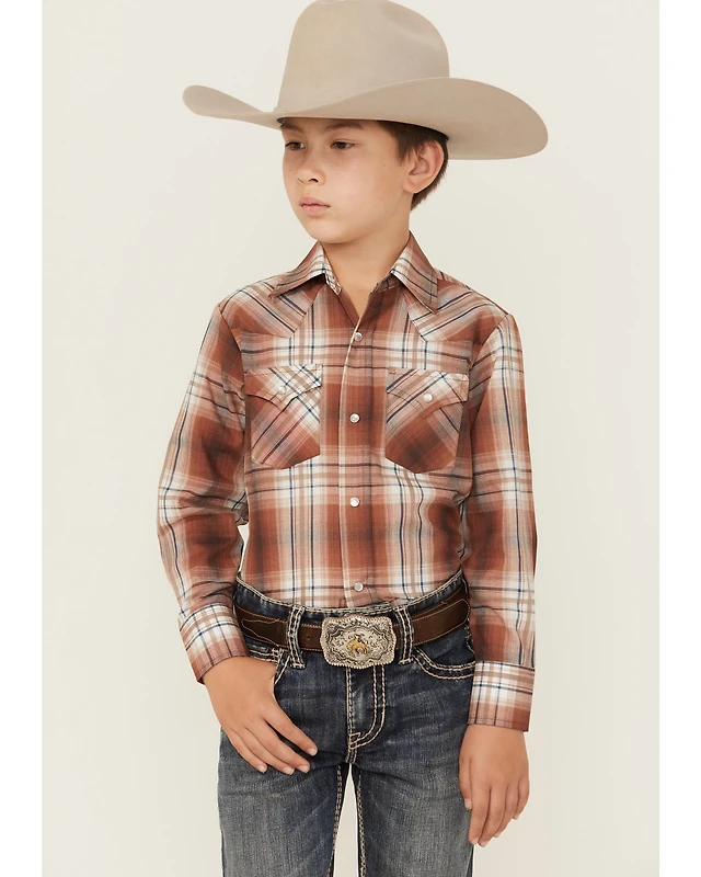 Ely Walker Boys' Plaid Print Long Sleeve Snap Western Shirt