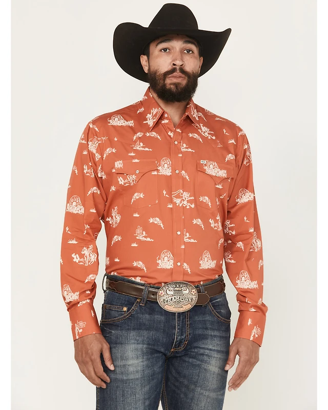 Ely Walker Men's Horse Print Long Sleeve Snap Western Shirt