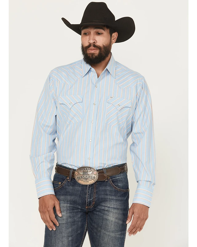 Ely Walker Men's Striped Print Long Sleeve Snap Western Shirt